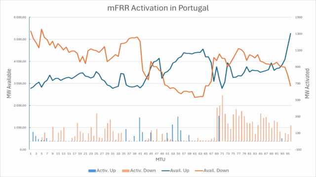 Figure 3: Example of mFRR Availability and Activation in Portugal (Source: REN 18/02/2026).